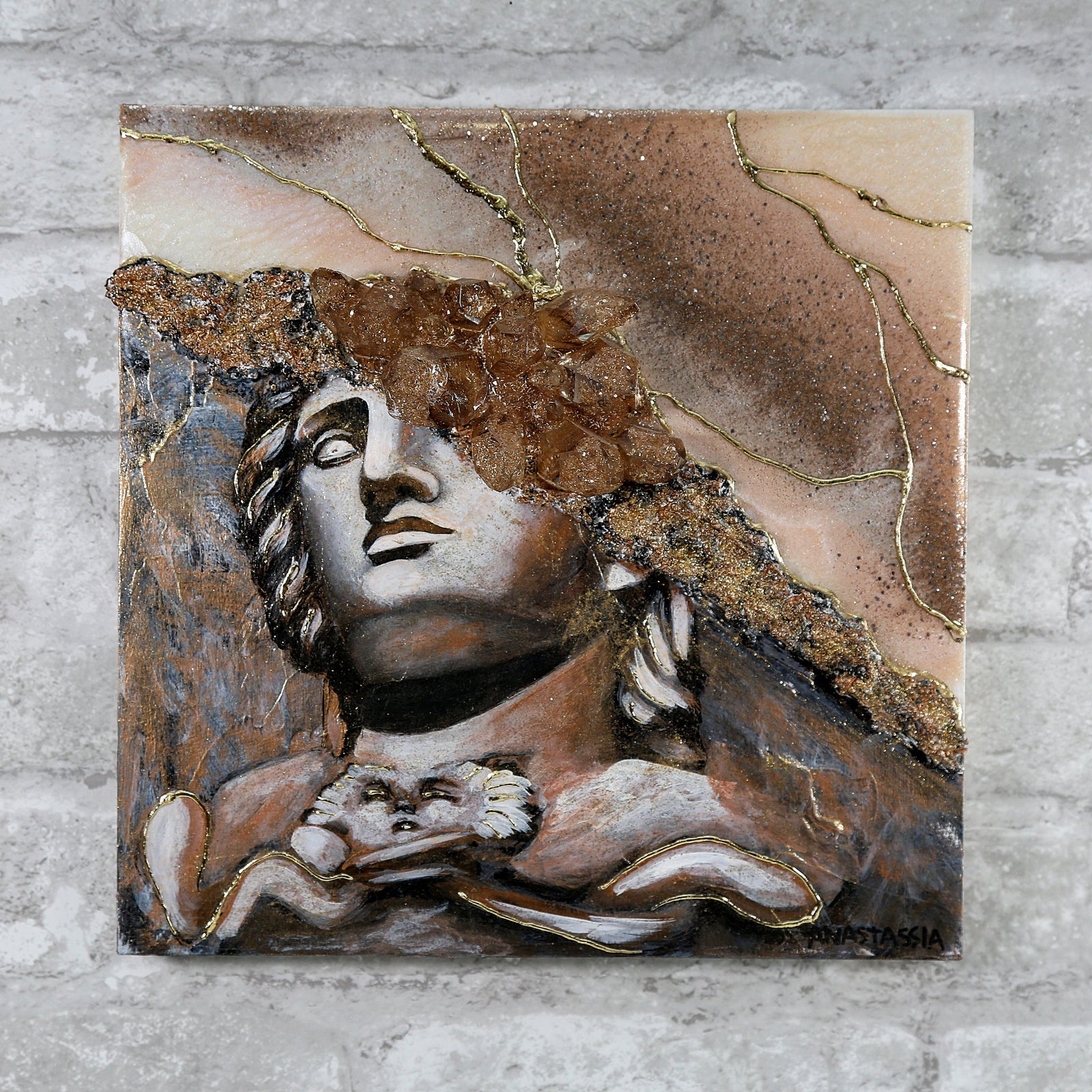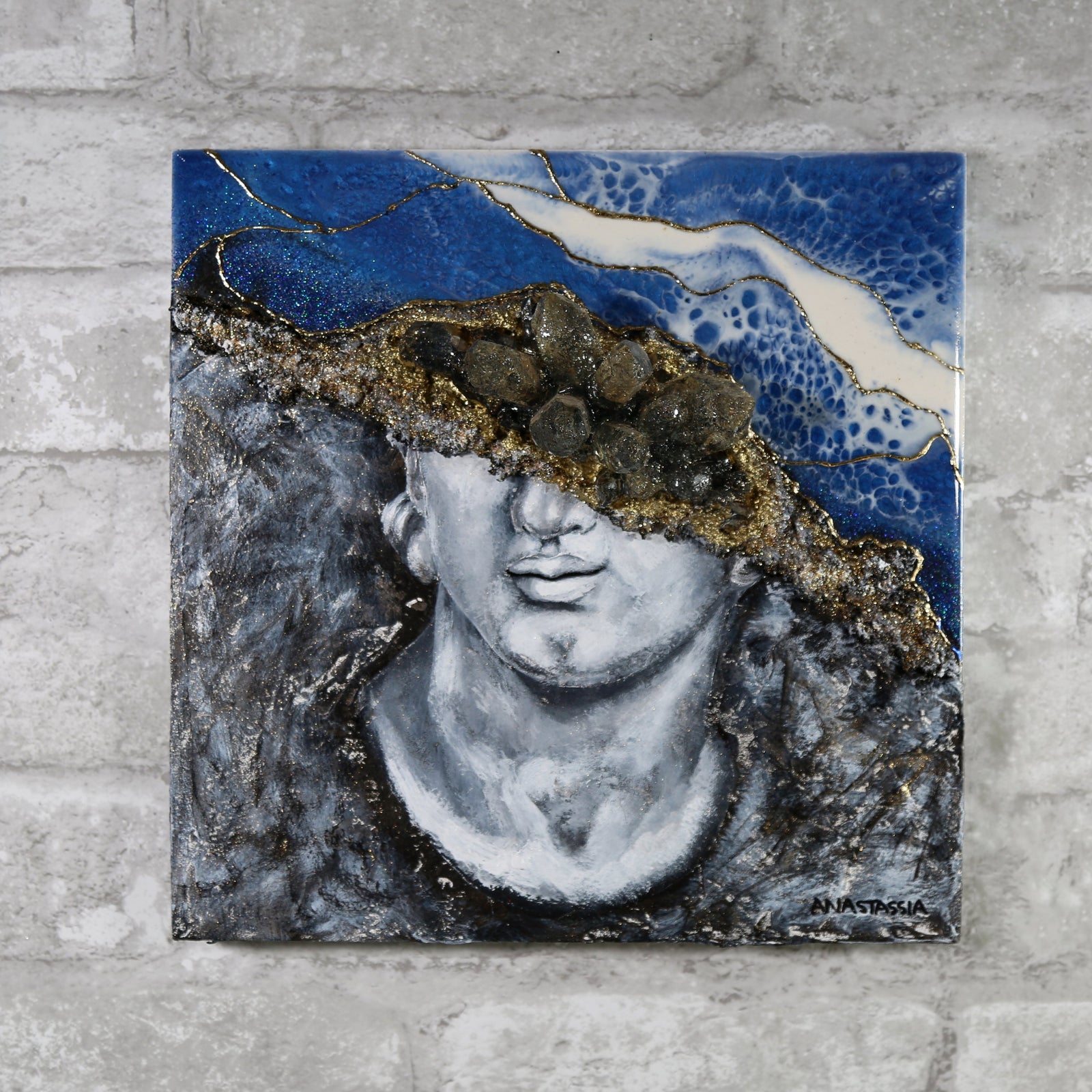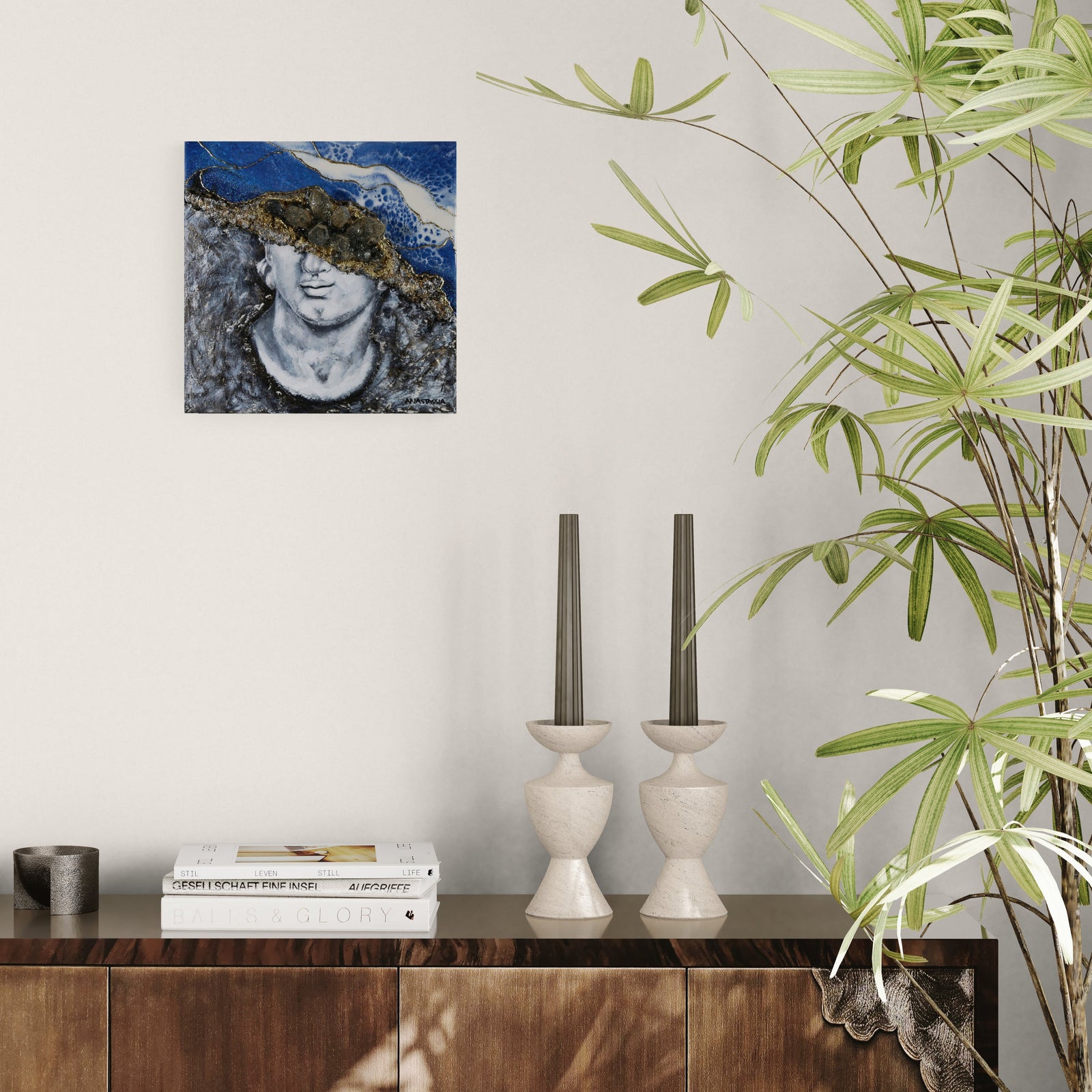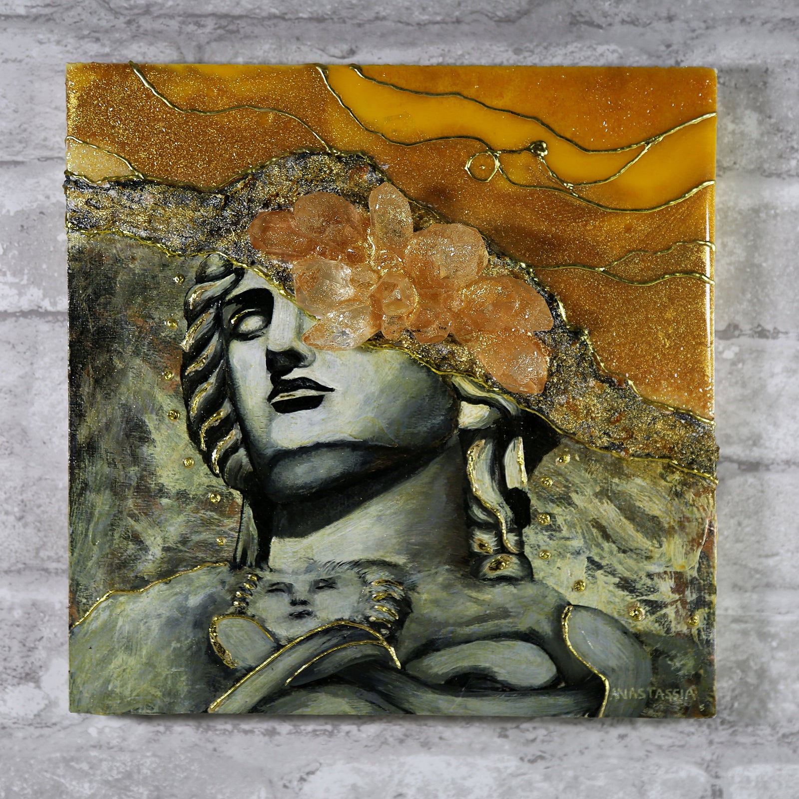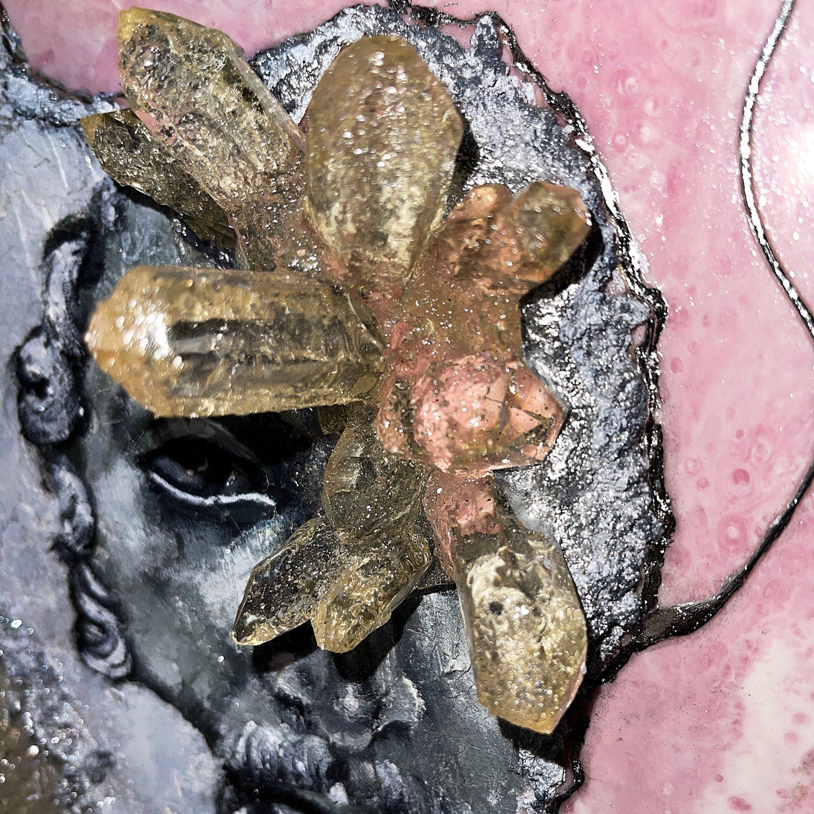 The Monumental series is a reimagining of ancient statues — fragmented, weathered, and incomplete, yet still strikingly powerful. Through layers of flowing resin, gold leaf, and crystal, the series bridges the sacred and the modern, celebrating resilience and rebirth.