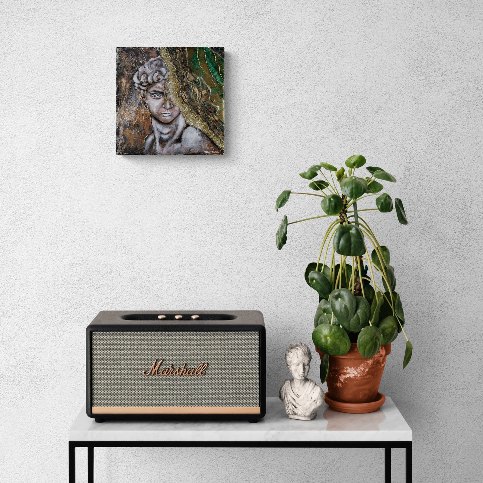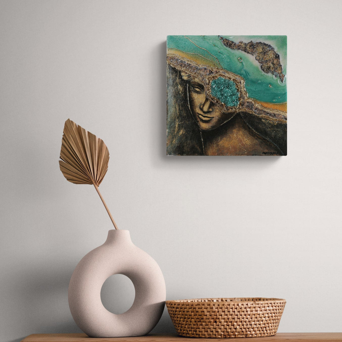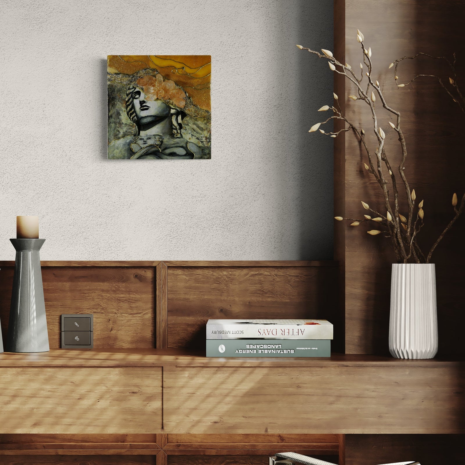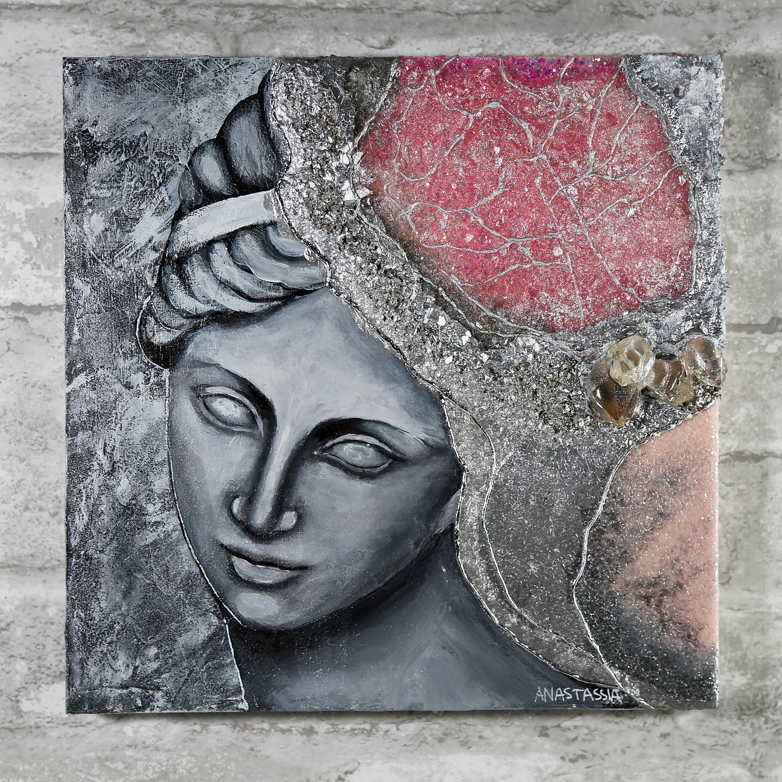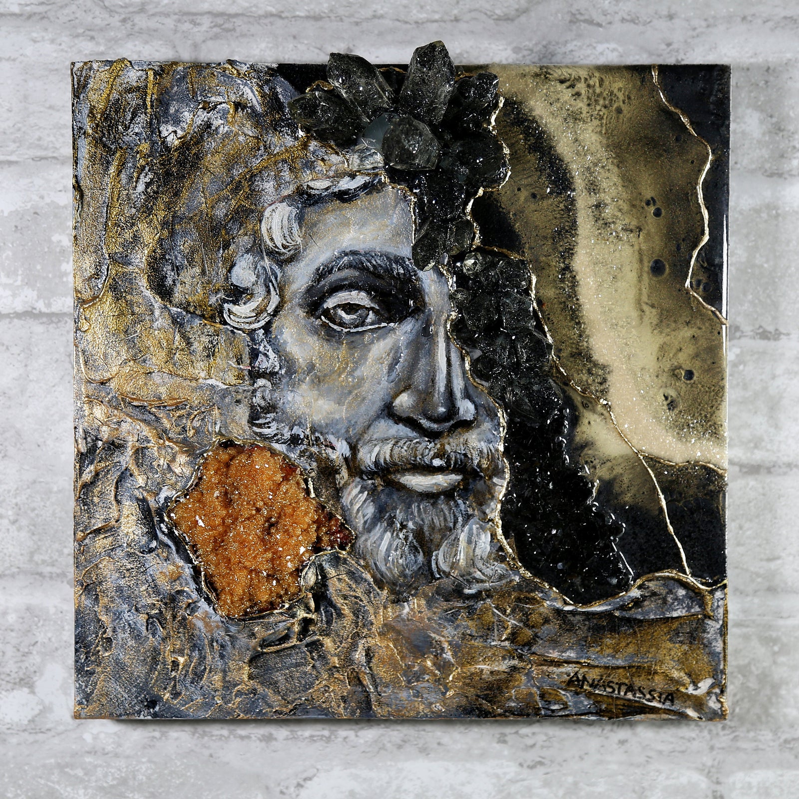 The Monumental series is a reimagining of ancient statues — fragmented, weathered, and incomplete, yet still strikingly powerful. Through layers of flowing resin, gold leaf, and crystal, the series bridges the sacred and the modern, celebrating resilience and rebirth.